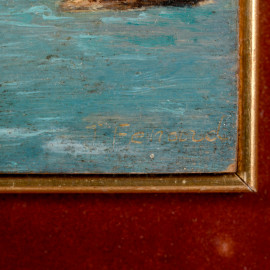 Piccolo scorcio lacustre, olio su tavoletta, XX secolo, firmato in basso a destra, cm 10x12, entro cornice, (difetti)