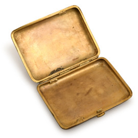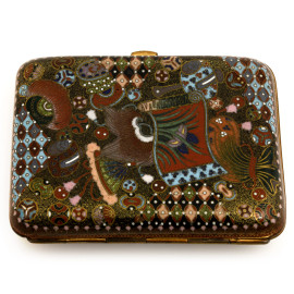 Portasigarette in metallo smaltato in policromia con decorazioni floreali, geometriche e di volatili, XX secolo, cm 1,5x9,5x7