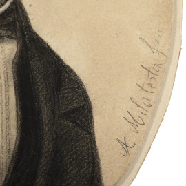 Ritratto di giovane gentiluomo, grafite su carta, 13,5x9,5, entro cornice, firmato a destra, (difetti)