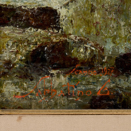 Scanno, olio su tavola, cm 63,5x44, entro cornice, firmato e datato in basso a sinistra "G. Sabbatino Scanno 1927"