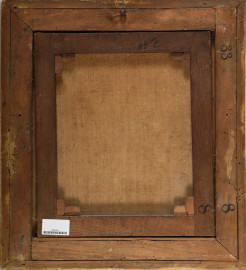 Scena di taverna, olio su tela, XIX secolo, cm 41,5x36 entro cornice, (difetti)