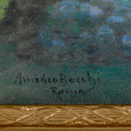 Scorcio di parco, pastelli su carta applicata su cartone firmato e datato "Roma" in basso a sinistra, cm 28x37,5, entro cornice, (difetti)