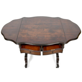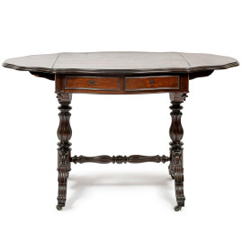 Scrittoio a bandelle in mogano, con doppio cassetto al fronte mosso, poggiante su due gambe bipartite raccordate, XX secolo, cm 73x71x66 (chiuso); cm 73x71x121 (aperto), )difetti)
