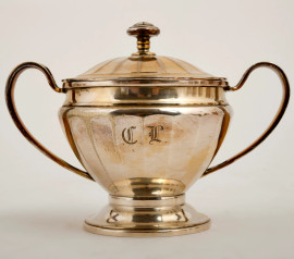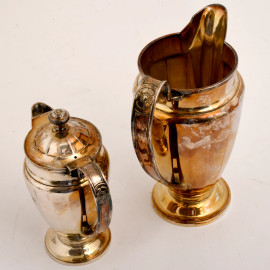 Servizio da the e caffè composto da sette pezzi in metallo argentato, misure massime cm 15,5x17,5x13 (difetti)