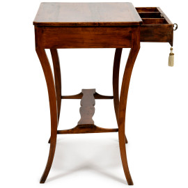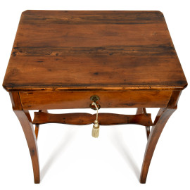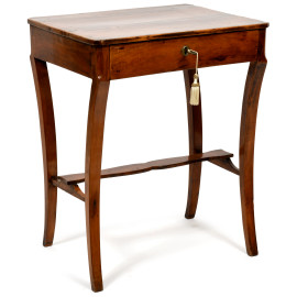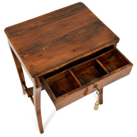 Tavolinetto in noce a un cassetto, XX secolo, cm 71,5x58x44,5, (difetti)