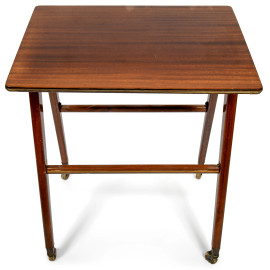 Tavolo da scrittura in stile Gio Ponti con gambe raccordate a coppia e rotelle, cm 81x65x45, (difetti)