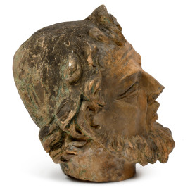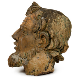 testa di fauno, XIX secolo, terracotta, cm 44x33x34, (difetti, mancanze, rotture)