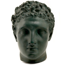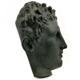Testa di ispirazione classica in gesso dipinto a bronzo, XX secolo, cm 31x21x15, (difetti)