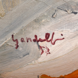 Vaso di fiori, olio su cartone telato, XX secolo, cm 93,5x71 entro cornice, firmato in basso a destra (difetti)