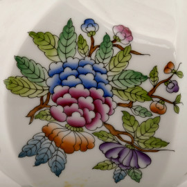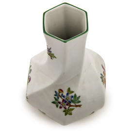 Vaso in porcellana Herend con profilo a torchon decorato in policromia con fiori e farfalle, XX secolo, altezza cm 22, (difetti)