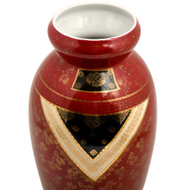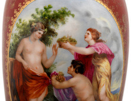 Vaso in porcellana Vecchia Vienna a fondo rosso con preziosi decori in oro e scena mitologica, fine del XIX secolo, altezza cm 40, (difetti)