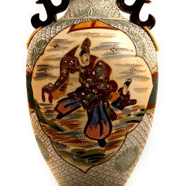 Vaso Satsuma in ceramica decorato con samurai. Giappone, XX secolo, altezza cm 61, (dfetti)