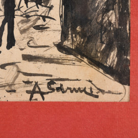 Achille Sdruscia, Facciata di chiesa, tecnica mista su carta, firmato in basso a desta, 42,5x36 compreso passepartout entro cornice