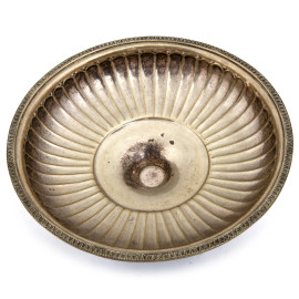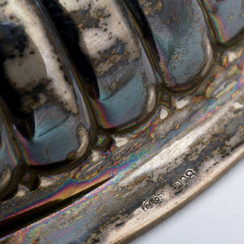 Alzatina centrotavola in argento cesellato poggiante su base quadrata a quattro piedini a ricciolo, cm 12x21,5x21,5 peso gr 410