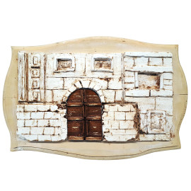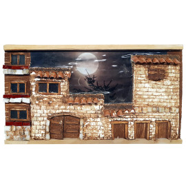 Artigianato toscano, Scorci di paese, lotto composto da due bassorilievi polimaterici, cm 20x35 ciascuno