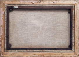 Artista dell’Ottocento, Paesaggio fluviale con cascina, raffinato olio su tela, cm 40x61, firmato, con cornice