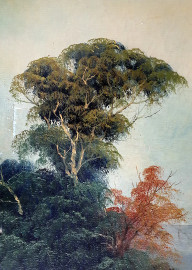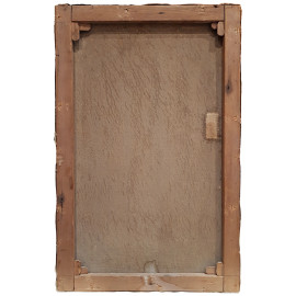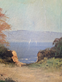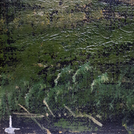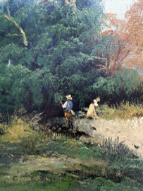 Artista dell’Ottocento, paesaggio lacustre con alberi e pescatore, olio su tela, cm 56x36, firmato in basso a sinistra
