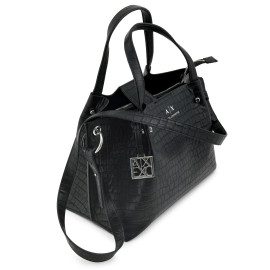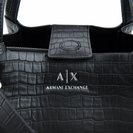 Borsa Armani Exchange in similpelle nera con lavorazione a coccodrillo, cm 24x34, (segni di usura del tempo)