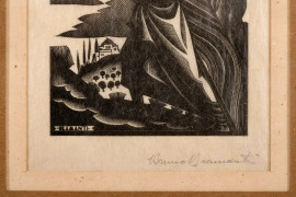 Bruno Bramanti, Calvario, xilografia su carta, cm 7,8x6,5, entro cornice