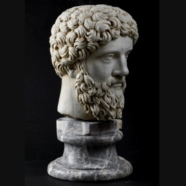 Busto in marmo raffigurante Marco Aurelio, XIX-XX secolo, altezza complessiva cm 45,5