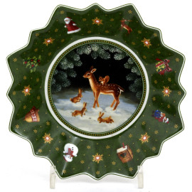Centrino in porcellana Villeroy Boch a tema natalizio, XX secolo, diametro cm 16,5