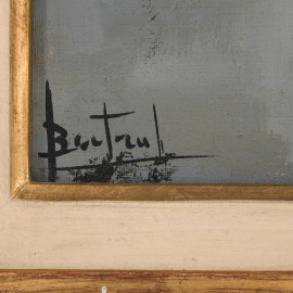Composizione astratta, olio su tela, XX secolo, firmato in basso a sinistra, cm 24x30