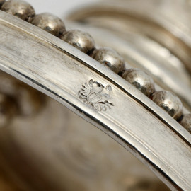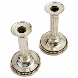 Coppia di candelieri in argento, XIX secolo, peso lordo gr 715, altezza cm 15,5