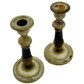 Coppia di candelieri in bronzo, XIX secolo, altezza cm 19,5