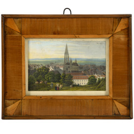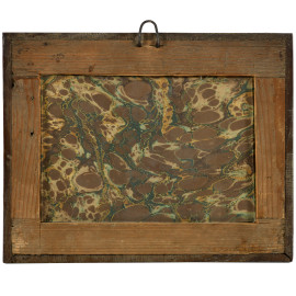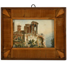 Coppia di cornicette in noce con stampe, XX secolo, cm 20,5x25,5; luce cm 11,5x16, (segni di usura)