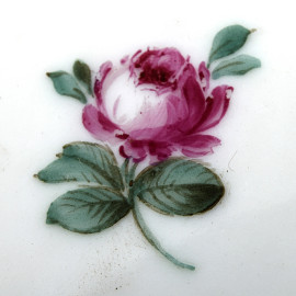 Coppia di grandi fiamminghe in porcellana decorata in policromia a motivi floreali e rifiniture in oro, XIX secolo, cm 63x24,5, (difetti)