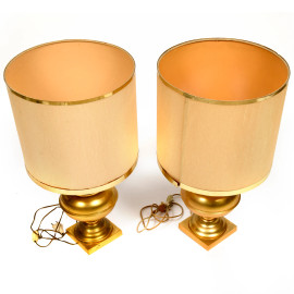 Coppia di lampade da tavolo in ottone, XX secolo, altezza senza paralume cm 38