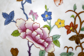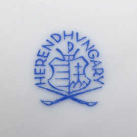 Coppia di piatti in porcellana Herend a cineserie in policromia e oro, diametro cm 28, XX secolo, (difetti)