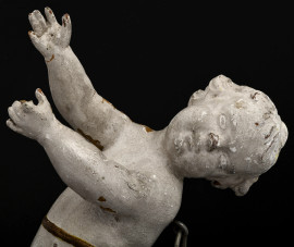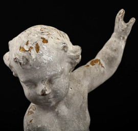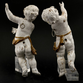 Coppia di putti in legno laccato e dorato, altezza cm 40, XVIII secolo, (mancanze e cadute di colore)