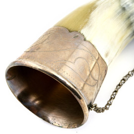 Corno in osso e metallo argentato, lungheza cm 26,5