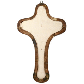 Crocifisso in legno ebanizzato e bronzo dorato applicato su supporto rivestito in tessuto entro cornice, XX secolo, misure complessive cm 63x39,5, (difetti)