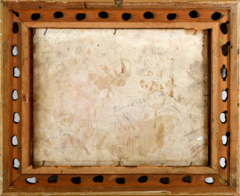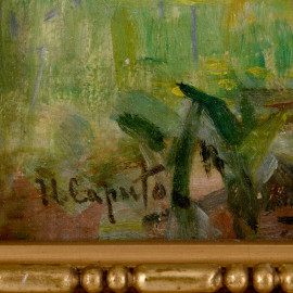 Fontana nel parco, olio su compensato, cm 30x40 entro cornice firmato in basso a sinistra