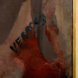 Franco Verroca (1927-1999) Uomo con pipa, olio su compensato, XX secolo, cm 83x36, entro cornice, firmato in basso a destra