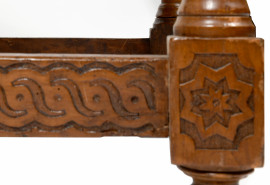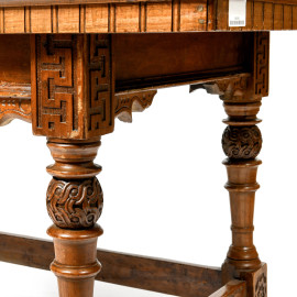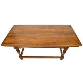 Grande tavolo in noce con piano removibile e struttura intagliata, gabe raccordate da traverse perimetrali, XIX-XX secolo, cm 81x180x87,5, (usura del tempo, lievi difetti)