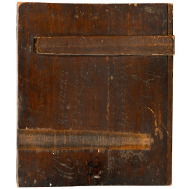 Icona raffigurante Madonna con Bambino, tempera su tavola convessa, XIX secolo, cm 36x31, (craquelere e cadute di colore)