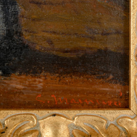 Il ciabattino, XX secolo, olio su cartone telato firmato in basso a destra, cm 23,5x29,5 entro cornice