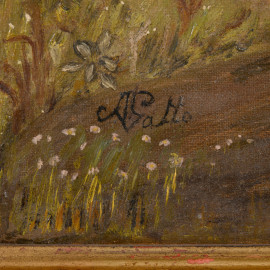 Incontro sul sentiero, XX secolo, olio su tela, cm 41x31, entro cornice, firmato in basso a sinistra