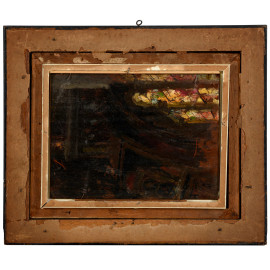 Interno di stalla, olio su tavoletta, XX secolo, cm 27x20 entro cornice, firmato in alto a sinistra