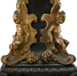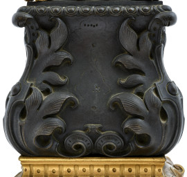 Lampada da tavolo in bronzo e bronzo dipinto a guisa di colonna corinzia, altezza cm 71,5, (da revisionare)