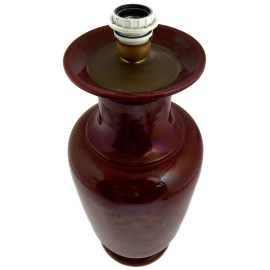 Lampada da tavolo in porcellana rossa, con base in legno XX secolo, altezza cm 55 (da revisionare)