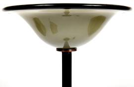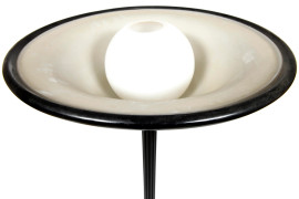 Lampada da terra a base circolare con fusto scanalato in resina e metallo, terminante in diffusore in vetro di Murano Barovier e Toso, altezza complessiva cm 176,5, diametro diffusore cm 52, XX secolo, (usura del tempo e scheggiatura)