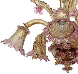 Lampadario in vetro di Murano a sei luci, cm 71x82 circa, (difetti e rotture)