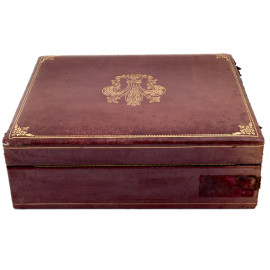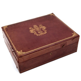 Lotto composto da cofanetto e valigia in cuoio fiorentino, XX secolo, misura massima cm 11x41,5x11