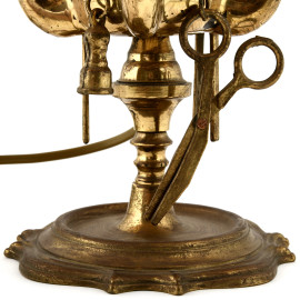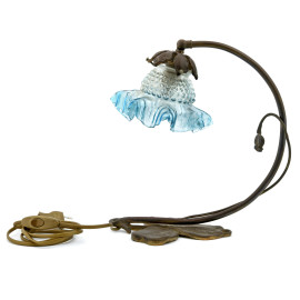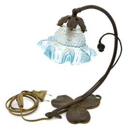 1) lampada da tavolo in bronzo a foggia di fiore, XX secolo, cm 30x26, (da revisionare)