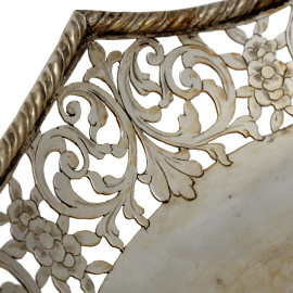 Lotto composto da oliera e centrotavola traforato in argento, peso complessivo gr 740, misura massima cm 24x24