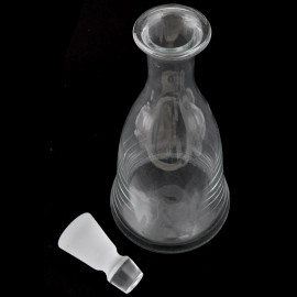 Lotto composto da una caraffa, una bottiglia e una insalatiera in vetro, XX secolo, altezza massima cm 31, (difetti, sbeccature)